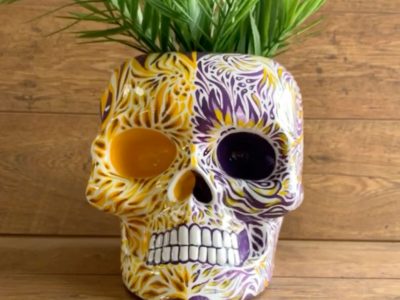 Maceta cerámica horneada a 1200 grados, intervenida con pintura acrílica y barniz. EXCLUSIVAMENTE PARA INTERIOR