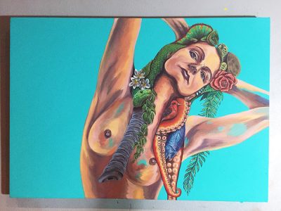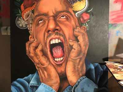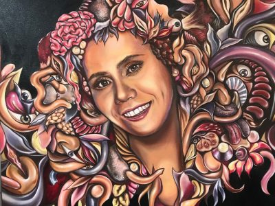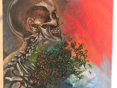 En esta apertura mostré varias obras, así como un mural grande donde inmacule a la DEMENCIA creando un autorretrato mexicano de las partes importantes en mi vida. También mostré varios de mis productos, así como ilustraciones, dibujos y procesos creativos.